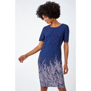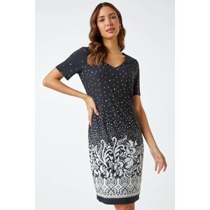 Textured Border Print Shift Dress from Roman. A striking textured, border print in contrast colours adorns this simple shift dress. Cut from a stretch, jersey fabric this dress is both comfortable and stylish. It features a feminine v neckline and simple, short sleeves. Princess line bust darts create a flattering shape as the dress falls to a fun knee length. Designed to pull on overhead this is fuss free fashion at its finest. Perfect for the office, simply add smart court shoes to complete the look! Roman Women's Textured Border Print Shift Dress in Black Size: 10