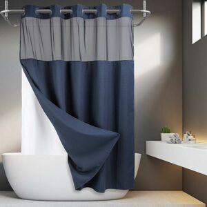 This shower curtain is designed with split rings that allow you to hang them easily. No need to buy hooks and no need to remove the rod A transparent window on the top lets light in and allows you to see outside while maintaining privacy. HOTEL QUALITY: The shower curtain and liner are made with high quality, 200gsm fabric to hold it in place. The water repellent treatment can repel water inside the bathtub Measurements: 71 wide by 74 long fits your standard sized bathroom, snap-in liner measures 70 x 54 (LxW)