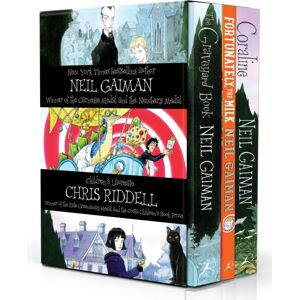 _______________From award-winning author Neil Gaiman comes this collector's edition box set, which contains paperback editions of three of his bestselling novels: The Graveyard Book, Coraline, and Fortunately, The Milk.Each book in this set is illustrated in trademark inspired, hilarious and moving style by acclaimed artist Chris RIddell, Children's Laureate and two-time winner of the Kate Greenaway Medal. From the creepy mists of the strange house in Coraline to the laugh-out-loud hilarity of Fortunately, the Milk, this box set is guaranteed to delight children and adults alike.The Graveyard Book: Nobody Owens, known to his friends as Bod, is a normal boy.He would be completely normal if he didn't live in a graveyard, raised and educated by ghosts.There are dangers and adventures for Bod in the graveyard.But it is in the land of the living that the real danger lurks, for it is there that the man Jack lives…Coraline:There is something strange about Coraline's new home.It's not the mist, or the cat that always seems to be watching her.It's the other house. Another mother and father with black-button eyes are waiting for Coraline to join them there. And they want her to stay with them. For ever... Fortunately, the Milk:Mum's away. Dad's in charge. There's no milk. So Dad saves the day by going to buy some. Really, that's all that happens. Very boring. There are absolutely NO aliens, pirates, or intergalactic police inside. And most definitely NOT a time-travelling hot-air balloon piloted by the brilliant dinosaur scientist Professor Steg...
