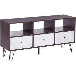 Minimalist Media Storage Unit for a TV up to 59ʺ. Add a touch of minimalistic charm to your living room with this functional TV stand. Made from low-maintenance materials, it stays looking fresh with minimal effort. Three shelves provide practical storage for your media essentials, keeping your space neat and organised. Slim metal legs give it a light, modern silhouette, making it a perfect fit for interiors that value simplicity, comfort, and timeless design. Details: Product Type: TV Stand Style: Minimalist General Color: Brown, Black Shade: Light Brown Material Type: Engineered Wood Main Material: Particle Board Additional Material: Iron Legs material: Metal Top Material: Engineered Wood Drawers: No Finish: Melamine Dimensions: Depth: 40 cm Width: 150 cm Height: 45 cm Weight: 24 kg Top Weight Capacity: 15 kg Offer Includes: 1 x TV Stand Key Features: Minimalistic, Scandinavian Style, Works Great with Many Interior Styles, Top-Notch Quality Materials, Exceptionally Easy Care,