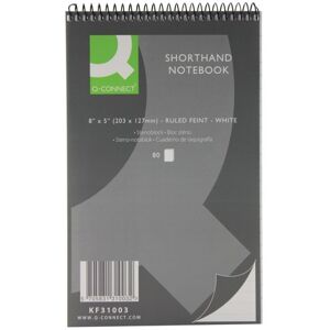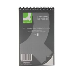 This handy Q-Connect Shorthand Notebook has pages which is feint ruled for neat note-taking. The notebook is headbound with a spiral binding and sturdy backboard for support. Each notebook measures 203 x 127mm (8 x 5 inches). This pack contains 10 notebooks.