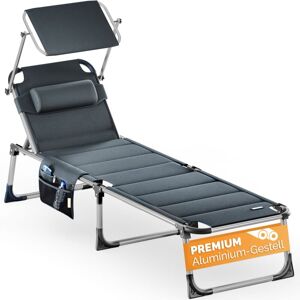 Summer, sun, sun lounger! With the high-quality Bari garden lounger from CASARIA you can enjoy your summer in a relaxed manner in the garden, on the beach or on a camping holiday. The cover made of robust textile makes the lounger particularly comfortable and is water-repellent, breathable, UV light-resistant and easy to care for . The back part of the lounger is adjustable to 6 position and you can adapt it individually to your needs. The comfortable pillow with fixing strap can be adjusted in height and removed as desired. The sunroof can be infinitely adjusted . When folded, the lightweight lounger can be stowed away quickly and in a space-saving manner and is easily transported thanks to the carrying handles . All joints are reinforced and, unlike conventional loungers, the cover material is embedded precisely into the frame. This ensures high tear resistance and a modern design. Product Details: - Robust construction with reinforced locking joints - Includes removable cushion