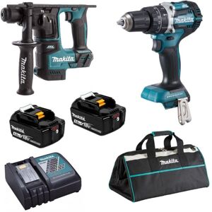 The Makita DLX2278TX1-KIT 18v 2 Piece Brushless Combi & SDS+ provides you a classic pair of tools for professional or DIY work. This collection includes a Combi & SDS+ 18v LXT Brushless Combi & SDS+ with high capacity 18v 5.0 Ah batteries and charger all in a convenient carry bag to easily transport from job to job. Kit Contents 1x DHP484Z Brushless Combi Drill 1x DHR171Z Brushless SDS 1x DC18RC Charger 2x BL1850B 18v 5.0Ah Batteries 1x 832411-9 Tradesman Holdall DHP484 Features and Benefits: Model DHP484 is a Cordless Hammer Driver Drill powered by 18V Li-ion battery (sold separate). Featuring the Makita Brushless motor, precision engineered to be up to 50% more efficient than a comparative model. Without brushes in place to apply friction a Brushless motor can produce a greater measure of torque per weight. With more torque at your disposal less power is required for day to day use, adding to the motors efficiency and extending the products overall lifetime as maintenance becomes