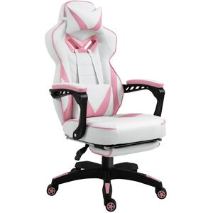 Fulfil your need for some serious style with this gaming chair with footrest from Vinsetto. It's fitted with thick sponge for comfort and wrapped in sleek faux leather with contrasting panels. Comfortable in design, it features a high back, armrests, a five-wheel base and can swivel around 360°. Whether it's work or play, the gaming chair for adults is a good choice. Specifications: ● Colour: Pink, White ● Materials: PU Leather, PVC Leather, Sponge, Steel ● Dimensions: 118.5-126.5H x 65W x 70Dcm. Seat: 45-53H x 55W x 53D cm. Armrest Height to seat: 23 cm. Back Size: 81L x 54W x 11D cm ● Maximum load: 120 kg ● Item label: 921-237V71PK Features: ● Faux leather upholstery, in a cool colour block design● Thick padding for comfort, with armrests and a high back for body support ● Headrest and a lumbar pillow for support ● 170° reclining back ● Five castor wheels for easy movement when seated ● Maximum load 120kg, assembly required