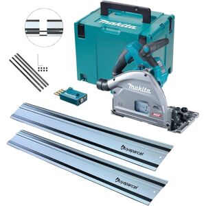 The Makita SP001GZ03 is a 40Vmax XGT cordless brushless 165mm plunge saw. An excellent addition for carpenters and kitchen fitters especially when access to mains power is not guaranteed. Compatible with existing Makita guide rails the plunge saw allows you to make perfectly straight and splinter free cuts with ease. The variable speed dial allows you to adjust the saw to job at hand and the in built depth stopper allows for easy groove gutting. Positive stops at commonly used bevel angles (22.5°, 45°) allow you to work quickly and efficiently. Supplied as a bare unit. Batteries and charger available separately. Features of the SP001GZ03 Plunge Saw: Auto-start Wireless System (AWS) Depth stopper for splinter-free groove cutting Bevel capacity: -1 to 48 degrees Guide rail (option) is attachable without adapter Electric Brake Variable speed control by dial Soft Start Constant speed control Brushless Motor Positive stops at commonly used bevel angles (22.5°, 45°) Rotatable dust nozzle: