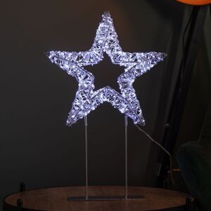 Add a touch of festive elegance to your home with this White Light up Star with LEDs. A beautifully crafted seasonal decoration designed to bring sparkle to any room. Perfect for mantelpieces, side tables, or as a centerpiece for your festive decor. Featuring a stunning white metal star mounted on a sturdy tabletop stand, this piece combines classic Christmas charm with a modern, luxurious finish. At the heart of this decoration are 720 twinkling rainbow LEDs, delicately arranged throughout the star to create a magical shimmering effect. These lights gently twinkle, casting a soft, festive glow that enhances the atmosphere. Mains powered with a clear cable, this decoration has a built in 8 hours on / 16 hours off timer to ensure hassle-free operation and energy efficiency. Suitable for indoor and sheltered outdoor use. Product Specifications 720 Twinkling Rainbow LEDs Height: 45cm Star Diameter: 30cm Mains Powered Timer Function 8 hours on 16 hours off