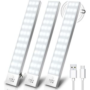 💡【LED Motion Sensor】: Closet lights have a built-in motion sensor with infrared sensor function. After turning on the automatic sensing mode, the LED closet light can stay on when you move within 3-5M. In addition, the LED kitchen lighting will automatically turn off when no movement is detected within the sensing range for 15-20 seconds, which is very energy-saving and environmentally friendly. 💡【High Brightness 5000K】: LED closet light with motion sensor has 36 LEDs, color rendering index> 80 Ra, 5000K super high illumination, they will create a brighter environment for you, with high brightness and anti-glare design, the soft light will not harm you or your family's eyes. 💡【Wireless USB Charging & Easy to Install】: LED closet lighting kit Have 3 USB cables, can be charged by computer, charger or power bank, it is convenient and fast. The battery capacity is 1000mA and it can be used for 2-5 days when fully charged (different modes consume different power). Closet light is with 6