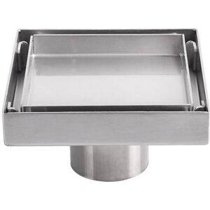 [Shower drain pipe size] 10*10cm. 42.5L/min high flow capacity, flanged base to drain. 【Material】This square drain is made of 304 stainless steel and the base flange is PVC structure. 【Installation】The drain shower tile is easy to unload and can be used in the kitchen, bathroom, garage, basement and restroom; it also prevents bad smells, insects and mice from entering the house.