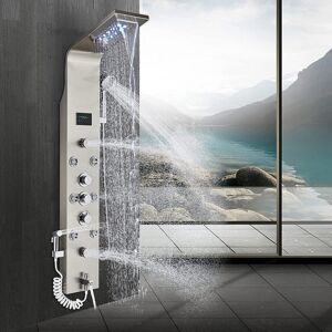 This product has an LED and digital display powered by water flow. There is a hydroelectric generator inside the product. When there is enough water flow, it will generate a safe power supply for LED and digital displays. If you want to take a comfortable bath every day, you are in the right place. This 50.39-inch shower panel tower system stainless steel 6 in1 multi-function shower panel with spout rainfall, waterfall, massage jets, tub spout, hand shower, and bidet for home hotel resort split type can do it for you. The shower system is lightweight, durable, and corrosion-resistant. Featured with durable ceramic valves ensuring there are no water leaks. available to work more than 600,000 times at a water temperature of 90 degrees. Its strong construction, paired with the fact that it is pre-plumbed. The sprinkler design makes you comfortable when taking a bath. It can bring you a good feeling from head to toe just like a massage. It is really a good assistant to ease fatigue and tiredness. What a good shower product for you! Come on and never miss it. Belfry Bathroom