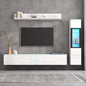 Refresh your look with this stylish three-piece wall cabinet set, designed to maximize storage space while enhancing the ambience of your room. Set includes: 1 LED-lit display shelf (140 cm) for displaying decorative items, 1 multifunctional TV cabinet (180 cm) with hydraulic doors, 1 push-on display cabinet (130 cm). Featuring energy-saving LED lighting (RGB color-changing strip) and a modern high-gloss finish, this set perfectly combines practical storage with a contemporary aesthetic. Perfect for storing media devices, books or displaying treasured items in your living room. Metro Lane