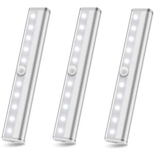 AUTOMATIC SENSOR: With our motion detection technology, the movement of a person in the dark or in the daytime will be detected. The LED lights of the motion sensor will turn on when there is movement within 10 feet and turn off automatically after 20 seconds of no movement. INSTALL AND REMOVE AT ANY TIME - With adhesive strip and magnetic strip, no tools, screws or nuts are needed. You can stick anywhere. The perfect LED lighting for closet, under counter, under kitchen cabinet. Use Anywhere: These small portable wireless LED lights with motion sensor are battery operated, making them a perfect choice to be used in the attic, basement, car, kids room, closet, drawer, emergency supply storage room, garage, greenhouse, hutch, mailbox, medicine cabinet, storm cellar, storage unit, tool shed, vanity mirror, workstation. Long Lifespan: Replaceable batteries last 6-12 months ULTRA BRIGHT LED CLOSET LIGHTS: The LED closet light with 10 LEDs in each light, the LED motion sensor lights