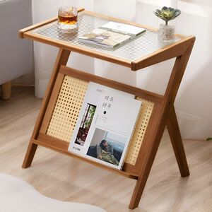 Description This side table balances solidity and casual style to turn heads in your living space. A clear ribbed tabletop rises on a base that welcomes an airy touch. In a dark tone, the table is also added with a warm and earthy feel. Place it in your small balconies, beside your sofa to create any setting that is perfect for unwinding. Features * Sturdy bamboo construction adds a touch of elegance and stability. * The glass tabletop is resistant to water and stains. *The L-shaped shelf below can be used as a display rack for magazines, photo albums, or vinyl records. Specification Dimensions: 55cm W x 35cm D x 56cm H Table Top Shape: Rectangular Material: Bamboo Colour: Brown Usage: Indoor/Outdoor Wheels / Casters Included: No Storage Included: No Package Content 1 x End Table Package Specifications Package Dimensions (WxDxH): 66.7 x 37.8 x 12.8cm Gross Weight: 4.95kg Notice Avoid long-time exposure under direct sunlight because it can cause tempered glass to explode. Maintenance