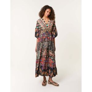 Look pretty in paisley this summer wearing this floaty maxi. Providing all the boho vibes you need. Team with large gold framed sunglasses and gladiator sandals. 100% Polyester Made in IndiaMachine washableV neckline 3/4 ruffle balloon sleeve Shirred waist Tie v neck backModel wears a size: S/MModel height: 5ft 10 / 178cm