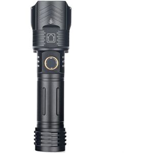 1. P90 lamp beads, high brightness up to 3500 lumens, 100,000 hours of service life 2. Convex lens: Eagle Eye convex lens, good light transmission performance, not easy to damage, solid aluminum attack head to protect the lens from wear 3. Telescopic zoom: Stretch the head left and right to , astigmatism concentration mode, convenient to use in different situations 4. Middle switch: High quality natural rubber material, non-slip surface treatment, light touch switch to change the lighting mode 5. Battery contact: The battery contact has good electrical conductivity and effectively prevents poor contact. [Working gear]: 5 gears (strong, medium, weak, flashing, slow flashing) [Product size]: 19x4.6x3.5cm (length after zoom) [Applicable battery]: 26650x1/ 18650x1/AAAx3 (without batteries) [Waterproof rating]: IPX4 [Product power]: 35W [Working voltage]: 3.7V [Can charge directly]: USB direct charge (with output and input dual interface) [Power display]: 4 LED indicators, each light
