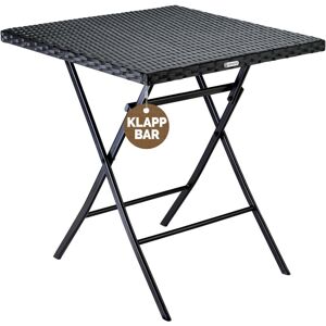 Rome Polyrattan folding table from CASARIA - high-quality outdoor furniture for your home! This practical poly rattan folding table saves space and is therefore ideal for balconies, terraces, gardens or even for camping . The compact table is quickly and easily folded and its light weight means it can be taken and stored anywhere. The sturdy construction made of galvanised steel with powder coating can hold up to 60 kg . The high-quality, durable polyrattan is weather-resistant and easy to care for. Thanks to the floor-friendly plastic caps, the table is also suitable for sensitive floors and interiors. Product Details: - Can be folded to save space - ideal for on the go - No assembly necessary! Open it up, done - Resilient, stable and durable - Weather-resistant materials - Galvanised, powder-coated steel frame - Easy to care for and dirt-repellent - Suitable for inside & outside - Easy transportation Technical Specifications: -Dimensions (LxWxH): 65x65x73cm - Folded Dimensions: