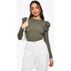 Long-sleeved ribbed top with eye-catching ruffle shoulders Fitted silhouette accentuates your curves Versatile design suitable for various casual occasions Soft, stretchy fabric for all-day comfort Pairs effortlessly with high-waisted trousers or skirts Make a statement in this chic long-sleeved top from Boohoo. The ribbed texture adds a touch of sophistication, while the ruffle shoulders inject a playful element into your ensemble. Perfect for the fashion-forward woman who loves to stay on-trend, this top can be styled for various casual events. Team it with white wide-leg trousers as shown for a fresh, modern look, or pair it with your favourite denim for a more relaxed vibe. The fitted silhouette flatters your figure, making it an ideal choice for family gatherings or casual outings with friends. Dress it up with statement earrings and ankle boots for evening drinks, or keep it casual with trainers for a day of shopping. This versatile piece is sure to become a staple in your wardrobe, offering endless styling possibilities for the social butterfly who wants to look her best without compromising on comfort.