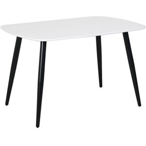 Our 120cm rectangular dining table features soft rounded corners and a tapered edge design with a matt-painted white finish. Each leg is precision manufactured from tapered tubular steel with black matt paint and built-in adjusters for uneven floors. This table is ideal for use in the kitchen or dining rooms. George Oliver
