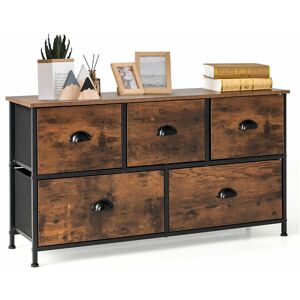 Our chest of drawers will be a great storage organizer to your home, which decorates the space at the same time. You can display ornaments, plants and collections on the tabletop. And 5 drawers in 2 sizes are capable of meeting your various storage needs, such as books, clothes, toys and more. Also, the drawers are removable and foldable according to your actual needs. The drawers are equipped with metal handles for smooth pulling and long service life. With simple and sleek design, this wide chest of drawers is suitable for lots of places including living room, bedroom, entryway, etc. The assembly is easy and quick with instructions and accessories. Features: Ample storage space with spacious tabletop and 5 drawers 5 drawers are designed in 2 sizes for meeting different storage needs Removable and foldable drawers are convenient for storage Metal handles help to open and close the drawers Made of rustproof steel frame, wear resistant non-woven fabric and P2 grade MDF Adjustable foot