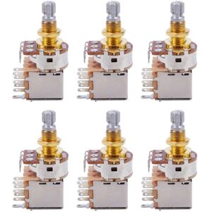 500K Dual Push 18 Tooth Coarse Spline Shaft for Metric Knob Allows wiring modifications such as coil swapping, tapping, and phase shifting Color: Silver Material: Metal Size: 18mm Package Contents: 6pcs x Potentiometers Only the above package content, other products are not included. Note: Light reflection and different displays may cause the color of the item in a little different from the real thing. The measurement allowed error is +/- 1-3 cm.