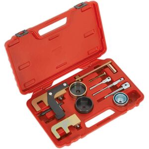 Essential tools for timing belt replacement on Renault/Nissan 1.5D, 1.9D, 2.2D and 2.5D dCi diesel engines. Covers engine codes K9K, F9Q, G9T, G9U. These engines are also fitted in Vauxhall/Opel, Suzuki, Mitsubishi and Dacia models. Kit includes crankshaft locking pins, belt tensioner tools and camshaft setting plates. Features & Benefits: • Essential tools for timing belt replacement on Renault/Nissan 1.5D, 1.9D, 2.2D and 2.5D dCi diesel engines. • Covers engine codes K9K, F9Q, G9T, G9U. • These engines are also fitted in Vauxhall/Opel, Suzuki, Mitsubishi and Dacia models. • Kit includes crankshaft locking pins, belt tensioner tools and camshaft setting plates. • Model No. VSE5871A Specifications: Model No VSE5871A Application(s): Renault: Clio II/Clio Campus/Clio Storia (01-11), Clio III (05-11), Espace/Grand Espace (00-02), Espace/Grand Espace IV (02-09), Fluence (09-15), Kangoo (00-09), Kangoo Trekka (01-05), Kangoo II/Kangoo Be-Bop (08-13), Laguna (99-01), Laguna II (01-07), Laguna III (07-14), Logan/Logan MCV (05-11), Master II (01-10), Megane (99-03), Megane II (02-10), Megane III (08-12), Modus (04-08), Modus/Grand Modus II (08-11), Scenic/RX4 (99-03), Scenic/Grand Scenic II (03-09), Scenic/Grand Scenic III (09-15), Thalia (07-08), Trafic II (01-12), Twingo II (07-14), Vel Satis (02-09) Nissan: Cube Z12 (08-11), Interstar X70 (02-11), Juke F15 (10-12), Kubistar X76 (03-09), Micra K12 (03-10), Note E11 (06-12), NV200 M20 (09-12), Primastar X83 (02-12), Primera P12 (03-07), Pulsar (14-15), Qashqai/ +2 J10 (10-14), Qashqai J11 (14-15), Tiida C11 (07-11) Vauxhall/Opel: Movano-A (00-10), Vivaro (01-12) Suzuki: Grand Vitara (05-15), Jimny (03-11) Dacia: Duster (10-14), Logan/MCV/Express/Pick Up (05-13), Sandero (08-15) Mitsubishi: Carisma (01-05) Brand: Sealey Engine Codes: 1.5D dCi K9K: 612, 636, 700, 702, 704, 706, 710, 712, 714, 716, 718, 722, 724, 728, 729, 732, 740, 750, 752, 760, 762, 764, 766, 768, 772, 780, 782, 790, 792, 794, 796, 800, 802, 804, 806, 808, 830, 832, 834, 836, 837, 884, 892, 894, 896, 898 1.5D DDiS K9K: 262, 266, 299 1.9D DDiS: F9Q B2 1.9D Di-D: F9Q 1, F9Q 2 1.9D dCi/CDTi F9Q: 650, 660, 664, 670, 674, 680, 690, 718, 732, 733, 740, 748, 750, 751, 752, 754, 758, 759, 760, 762, 772, 774, 775, 790, 800, 803, 804, 808, 812, 814, 816, 818, 820, 826, 870, 872 2.2D dCi/CDTi G9T: 600, 605, 606, 607, 642, 700, 702, 703, 706, 707, 710, 720, 722, 722, 742, 743, 750, 772 2.5D dCi/CDTi G9U: 630, 632, 650, 720, 724, 726, 730, 750, 754 Nett Weight: 2.11kg OEM Tool(s): Renault: Mot1054, Mot1430, Mot1489, Mot1534, Mot1536, Mot1537, Mot1538, Mot1543, Mot1705 Nissan: KV113B0110, KV113B0130, KV113B0360 Vauxhall/Opel: KM-6023, KM-6031, KM-6032, KM-6204, KM-6205, KM-6234 Suzuki: 09912-46510, 09919-58110, 09919-58120, 09919-76530 Dacia: Mot1430, Mot1489 Mitsubishi: MB996048