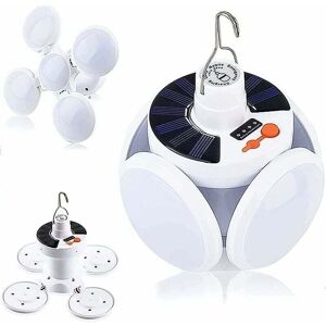 Foldable design: LED camping light 45 SMD LED lamp beads, the light is soft and not dazzling. The folding design expands the light range. The lamp body is made of high-quality ABS material, which is resistant to falling and abrasion. Lightweight and durable, the lamp body is compact and does not take up space. Solar charging + charging socket: LED camping light charging socket. Built-in two batteries, one 800mA. It can be powered by solar panels at any time to meet the needs of outdoor lighting or mobile phone power supply. There is a hook on the top of the camping light head, you can mount the LED light on the car engine, the bottom of the car or attach to another place; solid ABS material and IPX6 waterproof rating, you don't have to worry about rainy days. Easy to hang in tents or outdoors, perfect for camping, hiking, fishing or working. 4 adjustable panels provide 360° lighting for the entire room. Enough to easily light up tents, caravans, boats, garages, greenhouses or sheds.
