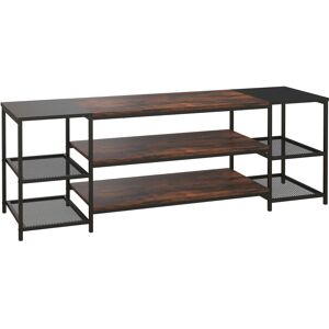 Upgrade your living room with this HOMCOM TV unit. It has six shelves and a large table-top: room for holding a TV and all the watching essentials you need. The open shelves of the TV stand are suitable for fitting plenty of differently-sized appliances. The black metal frame means a strong structure, whilst the wood-effect shelves create a striking look for industrial style. A must-have companion for every relaxing moment.Features:Spacious top for TVs up to 65"Open shelves and table top offer plenty of storageSteel frame is strong and supportiveTrendy industrial designAssembly required