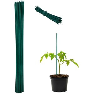 These durable and sturdy bamboo plant supports promote healthy growth for your plants in a set of 100. You can easily insert the stakes into the soil to provide extra stability for your plants. This practical set of 100 bamboo stakes also includes binding wires, allowing you to easily tie up your orchids or small tomatoes. The dark green bamboo stakes are suitable for both indoor and outdoor use and add a decorative touch to your space. Note: As this is a natural product, variations in shape, length, and diameter may occur. Vegetable support in a set of 100 in detail - Overall dimensions H x D: approx. 60 x 0.6 cm - Weight per stake: approx. 10 g - Material: bamboo, iron - Colour: dark green Decorative vegetable support in a set of 100 - Convenient 100-piece set – includes reusable binding wires - For securing and stabilising plants - Simply insert the bamboo stakes into the soil - Suitable for indoor and outdoor use - Decorative accessory for the garden Included in the delivery of