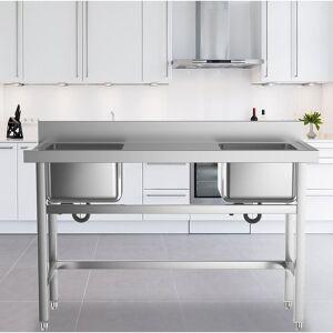 Features Built with high quality durable 304 type 18 gauge stainless steel which is rust and corrosion resistant and will withstand the high volume fast pace commercial kitchen. Single/Single with Plateform or Twin Wide bowls to choose, which means that 2 kitchen staff are able to comfortably work simultaneously to prep, rinse, wash or thaw. This 1 or 2 compartment sink has many uses and applications, in a commercial kitchen as a prep or pot sink, as an outdoor sink in your backyard or patio, or as a utility sink in a laundry room, workshop, garage or basement. Adjustable bullet feet allow you to level the sink for the best possible stability and protects your floors from scratches. Includes basket strainer drain; Stainless steel drains included and clean while the raised edges will prevent splashes and overflow. Specification Material: stainless steel Large bowl sizes Drains are included Demountable feet No pre-drilled hole to accept a wall-mount faucet Stainless steel legs with