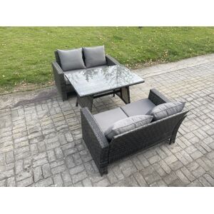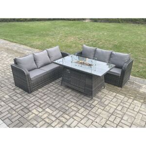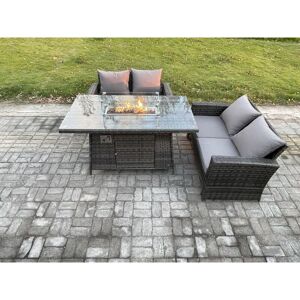 This deluxe gas fire pit rattan sofa dining set is a great addition to your patio or garden, made of high quality PE rattan and durable galvanized steel construction for sturdiness and structural durability. Set Dimensions: 1 x PC dining table with fire pit size: 140L x 80W x 69H cm; 2 x 2 Seater sofas size: 124L x 70W x 74H cm; Dark grey mixed rattan with dark grey fabric .Color may some difference due to light or monitor .we are unable to return the item due to color problem. the product is delivered on pallet, to kerbside only. Fimous 3 Pieces Garden Furniture Sets Poly Rattan Outdoor Patio Gas Firepit Dining Table Sofa Set for Garden Backyard Dark Grey Mixed