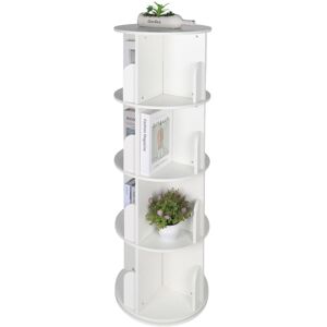 The round bookcase offers plenty of space for storing books, CDs, and DVDs, which are securely held in place by additional supports. The 16 compartments are also perfect for displaying decorative items such as vases and plants. Thanks to its 360-degree rotation, you can easily access the contents from all sides, making this bookcase particularly practical for room corners. The modern design makes the rotating bookcase a striking feature in any room. Rotating bookcase in detail - Overall dimensions H x D: approx. 128 x 40 cm - Compartments H x W x D: approx. 30 x 19 x 17 cm - Load capacity: max. 30 kg - Weight: approx. 15.3 kg - Material: MDF - Colour: white Round rotating book tower - Convenient access to all compartments thanks to its rotating design - Compartments for storing books, DVDs, and more - Supports in the compartments ensure that the contents remain secure - Compact footprint for optimal space utilization - Modern design as a decorative focal point in your home - Book