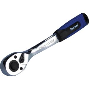 The BlueSpot 3/8in Drive 72 Tooth Soft Grip Ratchet is manufactured from chrome vanadium for increased durability. It features a soft grip handle for increased comfort. The 72 teeth provide 5° ratcheting increments making it ideal for use in tight spaces.