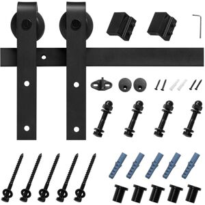 Stylish and Minimalist Sliding Barn Door Hardware This modern sliding barn door hardware kit is constructed from sturdy carbon steel, offering reliable performance and durability. Featuring a black powder-coated surface, it resists moisture and wear for extended use. Simple to install, it enhances room aesthetics while optimizing space utilization. Built to Last and Highly Reliable Effortlessly Operates with Minimal Noise Simple to Set Up Compatible with a wide range of door sizes Versatile Partition Tool Key Features Robust and Reliable: Crafted from high-strength carbon steel, this barn door hardware kit supports up to 330lbs / 150kg, ensuring stability without bending or deforming. Its black powder-coated surface is resistant to moisture, corrosion, and peeling. Effortless and Quiet Operation: Featuring durable thermoplastic wheels and premium bearings, this sliding barn door glides seamlessly and operates quietly, maintaining a tranquil environment. Effortless Setup: Comes with