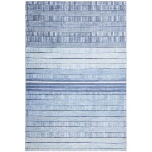 Modern Living Room Rug. This durable area rug works well in any interior, bringing an especially fitting tone to any modern, Scandinavian or marine style. Made of viscose and lined with cotton, this rug can easily withstand heavy foot traffic, maintaining its shape and softness. The geometric stripes pattern boasts beautiful colour variations, with the blue hue highlighting any décor in solid colours, creating a great matching effect perfect for bringing together your interior design. Details: Product Type: Low Pile Style: Scandinavian General Color: Blue, White Shade: Light Blue Material Type: Fabric Main Material: Viscose Backing Material: Cotton Material Composition: 100% Viscose Shape: Rectangular Anti-Slip Bottom: No GSM: 2400 g/m2 Pattern: Striped Suitable for Underfloor Heating: No Weaving: Handwoven Dimensions: Pile Height: 1 cm Width: 140 cm Length: 200 cm Weight: 10 kg Offer Includes: 1 x Rug Key Features: Hand-Crafted with High Attention to Detail, Adds a Homely Touch to