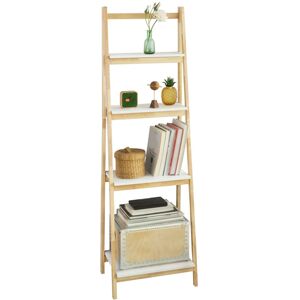 Practical 4 tiers folding storage shelf, ideal for living room, bathroom, office, bedroom, studio, etc. A ladder design for a stable furthermore eye-catching look. Foldable, easy to store away. Product Details Material/Finish: Frame: rubber wood with varnished coating. Shelves: MDF in white. Product Dimensions: W42 x D34 x H140cm. Folding Dimensions: W42 x D6 x H144cm. Weight: 8kg Load capacity: 15kg/tier. Item comes in a flat pack and requires self-assembly. Detailed instructions supplied. The decorative elements are not included in the delivery. Please contact us by email uk@sobuy-shop.com when you have any question, we will reply as soon as possible!