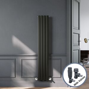 Vertical Black 1800 x 408mm Designer Radiator Layer Single Material Steel Weight 17.7kg Watts 648 BTU Rating 2150-2250 Power Source Hydronic(Hot water) Accreditations & Testing: Material: Low carbon steel Manufactured in accordance with BS EN 442 Registered: Complies with ISO9001:2015 Suitable for all UK central heating systems Thermostatic Radiators Valves Size may vary due to manufacturing process by +/-20mm if the stated size Thermostatic head and reversible bi-directional body Solid brass construction in Anthracite finish Built in sensor with liquid element Max Pressure Difference 0.8bar 1/2" BSP Standard 15mm compression inlet