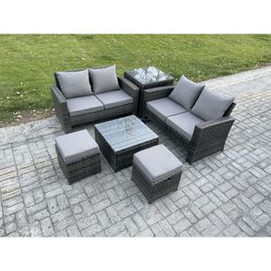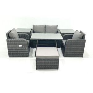 This 8 seater outdoor rattan lounge sofa set is a great addition to patio or garden, made of high quality PE rattan and durable galvanized steel construction for sturdiness and long lasting. Durability ,and can be put outdoor all year round. Perfect set to sit round with your family and friends. Set Dimensions: 1 x Side coffee table 65L x 65W x 66H cm; 2 x Big footstool 65L x 65W x 34H cm; 2 x Reclining Chairs: 74L x 67W x 79H cm; 2 x Love Sofa Size: 124W x 67D x 79H cm; 1 x Square Coffee Table 65L x 65W x 34H cm; Dark grey mixed rattan with dark grey fabric .Color may some difference due to light or monitor .we are unable to return the item due to color problem . The armchair are adjustable, you can adjust the inclination of the chair back from 90-130 through the button .the product is delivered on pallet, to kerbside only. Fimous Garden Furniture Set Rattan Outdoor Lounge Sofa Chair With Tempered Glass Table 2 Big Footstool Side Table Dark Grey Mixed