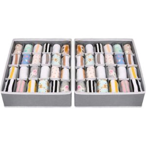 About this item Meet different needs: 2 sets of sock storage boxes, which can store all kinds of socks, underwear, belts, jewelry, underwear, bras, towels, etc., to meet your different storage needs and save space. ORGANIZED LIFE: With this storage box, everything is better. There is a place for each bra, each pair of socks, panties and scarves. Prevent clothes from getting dirty and make the room cleaner and tidy. High-quality material: Each storage box contains 24 ingredients, made of high-quality non-woven fabric, which is more moth-proof, waterproof, moisture-proof, mildew-proof, comfortable and durable, so you can wear it with confidence. . . Space Saving: The sock sharing design can make your storage and organization more convenient and save you time looking for items. In addition, these storage boxes can be folded into a small size to save space when not in use. Reasonable Size: 33 x 33 x 10 cm, ideal underwear storage basket for storing socks, bras and other items, socks can