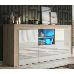 Discover elegance and functionality with the Stunning Sideboard 145cm by Mex Furniture LTD, a perfect blend of Bunel design and practicality for your home or office. Featuring sleek high gloss doors and a matte body, it's crafted from high-quality wood for durability. Its spacious storage options, including three cabinets, an entertainment centre, a glass shelf, and energy-saving LED lights, offer ample organization while accommodating TVs up to 50kgs. Easy to install and designed to enhance any space, this sideboard is an ideal choice for those seeking style and convenience. Elevate your space with this stylish and sturdy addition today. Metro Lane Colour: Dark Grey