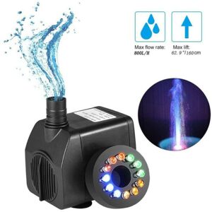 [12 LED Lights] - The fountain pump is equipped with 12 energy-saving multi-color LED lights to create a warm and relaxing atmosphere and provide amazing colorful lighting effects, perfect for decorating your fountain or aquarium! [Super Quiet Operation] - This aquarium pump runs quietly and smoothly, providing you with a soothing environment even when you have one in your bedroom. The fountain pump has a high water flow rate of 800L/H, which can provide enough oxygen for fish and other aquatic creatures. [Wide Application】- The fountain pump is perfect for small and medium-sized aquariums, fountains, landscaping, tanks, ponds, water gardens and hydroponic systems. Corrosion-resistant and with a powerful drive, this electric water pump is also suitable for seawater. [Water Flow Control]: The side flow control valve allows you to freely adjust the water flow according to your needs. (The lifting height is based on pumping water with a standard hose, not a free hose, the longer the
