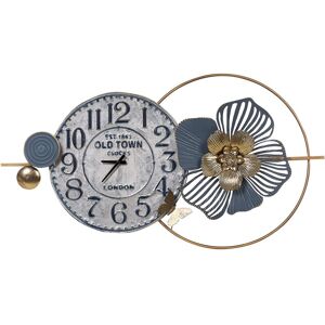 Metal Decorative Clock. Decorate your space with this modern wall clock, designed to make a statement in any room. Made from durable iron, it features decorative golden accents that lend a touch of luxury and elegance. Perfect for contemporary interiors, this clock effortlessly combines style with functionality. With sturdy hooks at the back for easy hanging, it offers both elegance and practicality, while its low-maintenance construction ensures lasting appeal. Details: Product Type: Wall Clock Style: Retro General Color: Blue, Gold, Grey Material Type: Metal Main Material: Iron Finish: Painted Handmade: Yes Dimensions: Depth: 4 cm Width: 90 cm Height: 49 cm Weight: 1.4 kg Offer Includes: 1 x Clock, Not Included: Batteries Key Features: With Hooks on the Back for Hanging on the Wall, Decorative Yet Functional, Perfect for Both a Bedroom and a Living Room, Timeless Design, Unique Handmade Piece, Powered by Single AA Battery Assembly Information: Does Not Require Assembly Additional