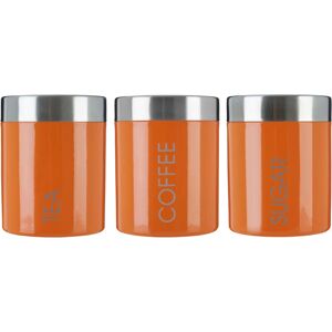 Each canister is made from water and scratch-resistant enamel, with an orange finish that allows the silver toned lettering to stand out clearly. Their satin stainless steel lids coordinate with the lettering, and pop into place securely thanks to the ridged rim on each canister. Keep them clean by washing them in warm soapy water.