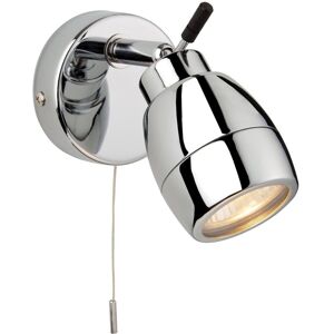 MARINE 9501CH.ᅠ A modern spot light fitting, finished in polished chrome.ᅠ This mains voltage halogen wall light is rated IP44, making it suitable for use in bathroom zones 1 & 2. FEATURES * Wall light * IP44 - suitable for bathroom zones 1 & 2 * Polished chrome finish * Pull switch SIZE * Projection: 140mm BULBS * Takes 1x 35w (max) GU10 halogen lamp - NOT INCLUDED ORDER CODE * 9501CH