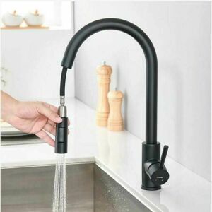 HIGH QUALITY IN THE KITCHEN: The single-handed kitchen faucet is made of stainless steel, combined with a durable matte black finish that resists corrosion and wear. Maximum comfort : pull-out kitchen tap, common spout and shower spout, 360° swivel, spout height up to 204 mm, easy to clean sinks and filling containers. Innovation in terms of Water-saving: The faucet body is equipped with an ABS bubbler, which can effectively filter sediment, reduce the noise of water flow, and save water. up to 50% water. Easy to install: thanks to good instructions and a quick assembly system, installation is simple and fast. 35mm tapped holes are required. Kitchen tap with pull-out spray Detachable tap with 400mm hose, flexible and convenient design for easily filling containers or cleaning sinks . A gentle spray with a normal air stream for cleaning items like fruit or utensils. → Automatic recovery Using the weighted ball, we could easily put the faucet back. 360° rotatable removable aerator: the