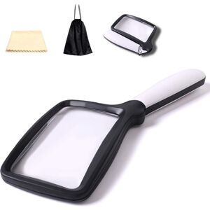 【Large and Wide Horizontal Magnifying Lens】The rectangular lens in particular simulates the way we naturally look at things, the magnifying glass covers a large viewing area, the lens measures 11 x 6 cm and magnifies up to 300%. 【Crystal Clear Optical Lens】: This LED magnifying glass is perfect for reading/viewing small print or objects, maps, newspapers, magazines, and also great for eye conditions such as eye aging and macular degeneration. 【5 High Brightness LEDs】: High brightness, uniform light and two brightness options, adapt to different lighting conditions and can also be used normally to achieve perfect lighting for different tasks. 【Lightweight and Rotatable Folding Handle】: Weighs only 200g, making it ideal for anyone who enjoys reading for long periods. The handle can be folded and folded to reduce the size of the product, easy to carry and receive.