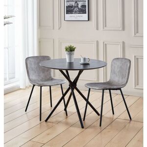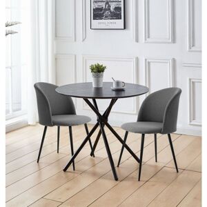 This stylish table with oak effect top and powder-coated legs is guaranteed to turn heads and catch the eye wherever it is placed in the home. The laminated board of the table is strong and sturdy and instantly appealing with its white finish; it is the perfect foil for the stylish black legs. The round table can be accommodated in rooms of any size with ease. What's more, the table is as versatile as it is stylish. There are many potential uses that the table could have in the home. It's up to you to decide how to get the most from this neat and appealing table. The table can be paired with the stylish matching grey chairs with leather effect. Durable, hard-wearing and incredibly easy on the eye, this round table will blend with any décor in the home. This on-trend chair with black legs is the epitome of contemporary style. The chair has a slim profile with an understated but exquisite ergonomic seats. Ideal as a dining chair, home office chair, or casual chair; it will bring a touch
