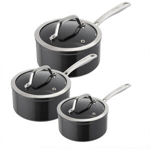 Part of the reliable, suitable for everyday use Easy Induction range, this Kuhn Rikon Easy Induction 3 Piece Saucepan Set offers excellent heat conduction and a durable non-stick, which is perfect for a variety of cooking. Suitable for use on all hob types including induction, these saucepans can also be used in the oven, up to 220°C. Perfect for cooking sauces, soups, scrambled egg, vegetables, potatoes, rice, pasta and so much more. Easy Induction pans have a durable non-stick on a forged aluminium core, so they are lightweight, heat up efficiently and are easy to clean. The 3 layer non-stick coating is reinforced with titanium particles for added strength. Hand washing recommended.This comprises: 1 x 16cm saucepan, 1 x 18cm saucepan and 1 x 20cm saucepan.