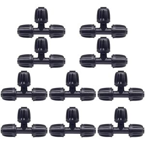 Pack: 10 pieces of teas, sturdy and durable. Easy installation. Suitable for drip irrigation fittings for 1/2 inch ID tubing and 0.6-0.63 inch (16 mm) OD tubing. EASY TO INSTALL: No glue, tools or accessories are required. Simply push the tubing firmly onto the barb and tighten the nut. The screw cap increases the tightness of the hose and will not leak. Durable Material: The barb connector for drip irrigation latch is made of environmentally friendly anti-aging plastic. It is strong and lasts a long time. Widely Used: Ideal for use with raised beds, residential, agricultural, greenhouse and farm irrigation applications.