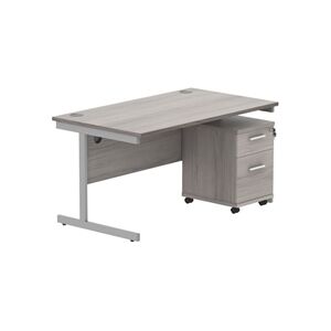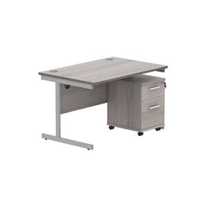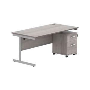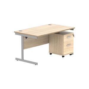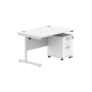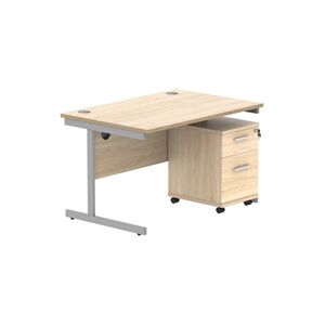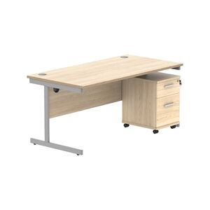 Rectangle Desk Design. Equipped with two drawer Under Desk Pedestal. Single Upright Steel Frame. Adjustable feet for levelling on uneven floors. Wooden top finish. Wooden back panel. Two cable ports. Lockable top drawer. Pedestal on castors.