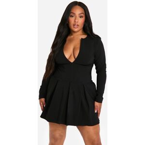 Striking plunge neckline creates a bold, confident silhouette Elegant ruched detailing accentuates the waistline for a flattering fit Long sleeves offer versatility for transitional evening wear Mini length showcases legs whilst maintaining sophistication Lightweight crepe fabric drapes beautifully against the body Make a statement on your next night out with this head-turning mini dress from Boohoo. The dramatic plunge neckline commands attention whilst the cleverly placed ruching cinches the waist for a figure-enhancing effect. Style with strappy heels and a compact clutch as shown for the ultimate going-out ensemble. Perfect for cocktail bars, club nights or special evening events, this dress strikes the ideal balance between daring and refined. The clean lines and minimalist design make it an excellent canvas for bold jewellery - try layered necklaces or statement earrings to personalise your look. The versatile design works equally well for impromptu drinks with friends or planned celebrations where you want to make an impression.