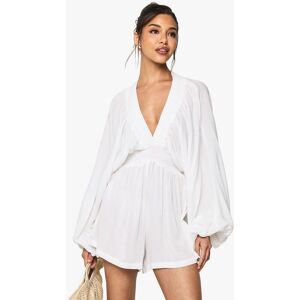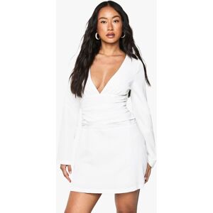 Boohoo Womens Long Sleeve Plunge Ruched Mini Dress - White - Size 8 Uk